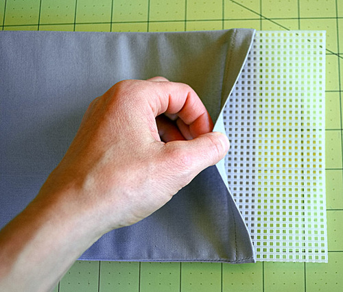 - Turn right side out and slip the plastic canvas inside the sleeve.