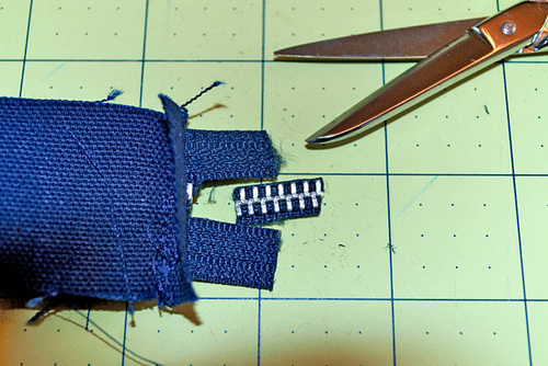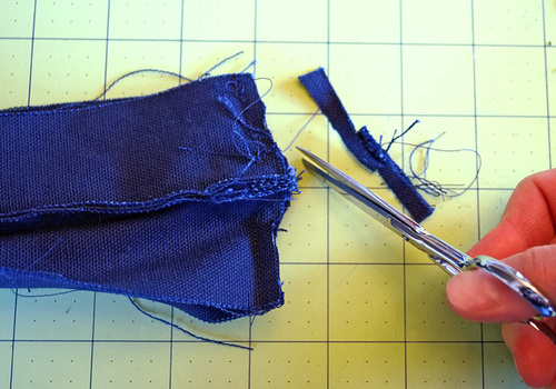 - Trim away the bulk along the new seams as well as at the existing center zipper seam.