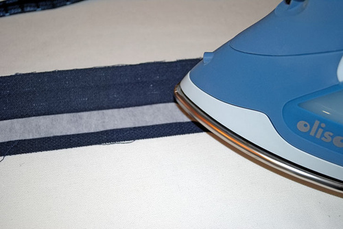 - Press flat, pressing in the raw edges of the opening so they are flush with the sewn seam.