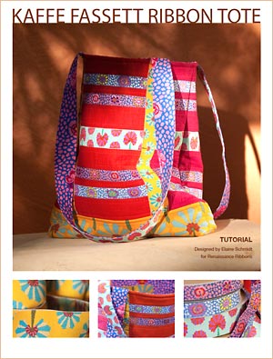 The Kaffe Fassett bag tutorial has been created as a .PDF file. Click the image below to download the Kaffe Fassett Ribbon Tote. You will need Adobe Acrobat Reader, which is a free program. The .PDF has a number of large, colorful photos and, depending on your connection, may take a bit to download. Please be patient.