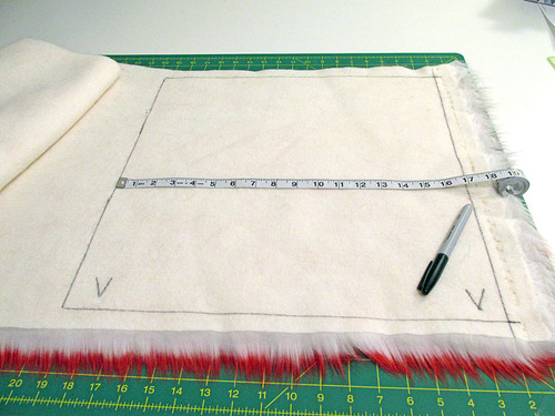 - It is extremely important the long and luxurious nap of the faux fur is all running in the same direction! Otherwise, your finished pillows will start to look like a toddler’s very bad hair day. Your cut lines should always be drawn in marker on the backing of the faux fur. When doing this, add drawn arrows to help you remember, and align, the direction of the nap.