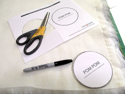 - On the scraps from your square cuts, use the pattern to cut TWO circles for the center poms.