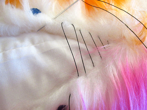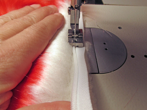- Slip stitch the opening closed with a neat ladder stitch. We recommend using a contrasting color for the thread so you can better see what you’re doing amidst all the faux fur. The stitches will disappear into the nap with the stitched seam is pulled taut.