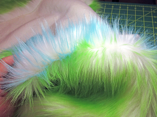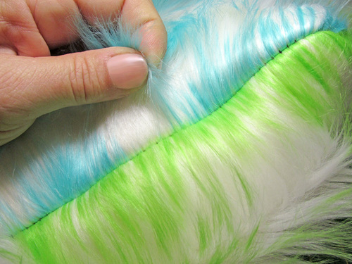 - With a faux fur that has a very long nap all flowing in the same downward direction, there is an exception to the “always tuck and pin” method of layering front to back.