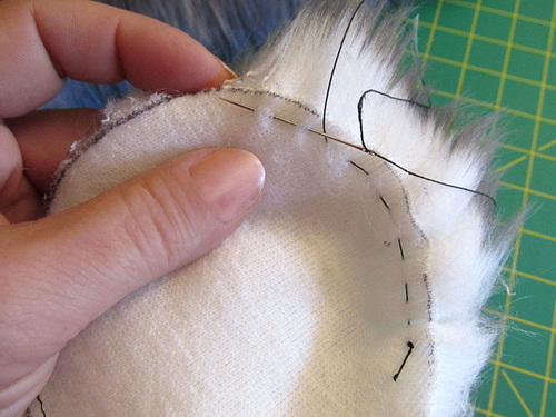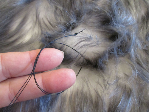 NOTE: The backing weave of faux fur tends to be a bit more open than standard cottons. It helps to secure the knotted end of the your sewing thread with two or three extra stitches in place. Once you feel the knot is secure, start the running stitch.
