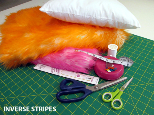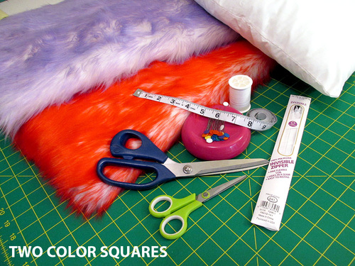 In the photos and supply list below, you’ll notice that we show invisible zippers. This is completely optional, but necessary if you want your cover to be removable. You can also opt to simply hand stitch closed. We show you tips below for both methods. As with most luxury faux furs, this shag is meant to be spot cleaned or dry cleaned.