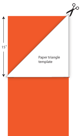- Make a template for the corner triangles. To do this, cut a 15¾” square from paper. Draw a line from one corner diagonally to the opposite corner to form a triangle. Cut along the drawn line. Discard one of the triangles. The remaining triangle will be your template and includes the ½” seam allowance.