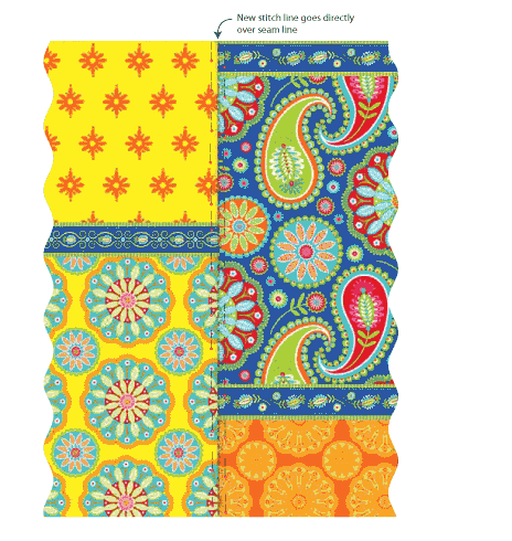 - Stitch together, using a ½” seam allowance. Press the seam open.
