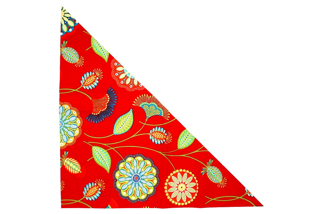 - Fabric for front G piece and front triangular corner J: ½ yard of of 44-45″ wide fabric; we used Gypsy Bandana in Red Gypsy Flower by Pillow & Maxfield for Michael Miller Fabrics
