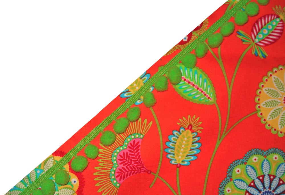 - 7 yards of ½” pom poms on self tape/ binding; we used Apple Green ½” poms from CreateForLess