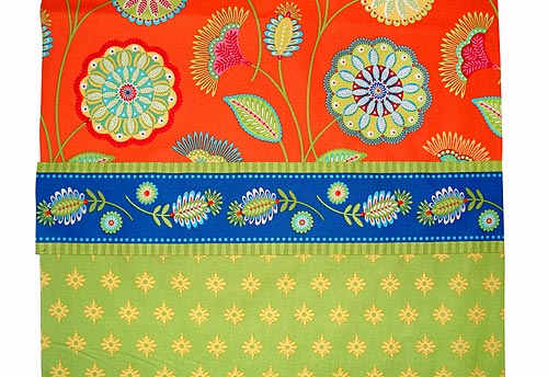 - Fabric for front B piece: 1 yard of 44-45″ wide fabric; we used Gypsy Bandana in Orange Gypsy Flower by Pillow & Maxfield for Michael Miller Fabrics