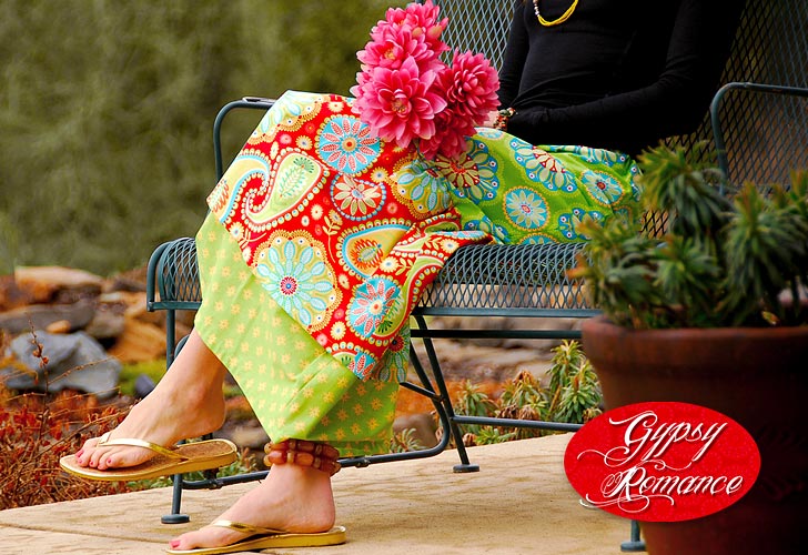 Our regular followers are probably surprised to see so many wearables in this latest S4H series. We’re just full of surprises aren’t we? Actually, we’re simply responding to your requests. You told us you wanted to see more easy-to-sew clothing items. Alrighty then! The Gypsy Romance tiered skirt is three simple rectangles gathered together and finished with a drawstring channel waist. No zippers… nothing but straight seams and two little buttonholes. Easy, bright and fun; it’s perfect for the sunny Spring weather we just know is coming… one of these days.