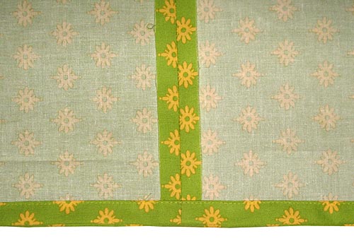 TWO 1½” x 31″ strips. These will be your Waist DrawstringTies. - From the fabric you are using for the bottom tier (Gypsy Bandana in Green Firefly in our sample), cut TWO 21″ high x 33″ wide rectangles. These will be your Front and Back Bottom Tier Ruffles.