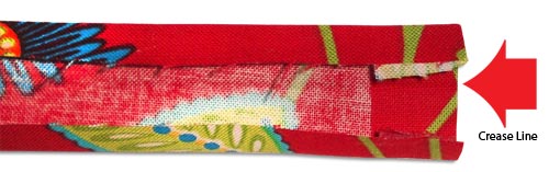 - Press under both raw ends ½”. Then press the tie in half lengthwise (matching up the raw edges along the 61″ sides) to create a crease that runs along the center of the entire 61″ length.