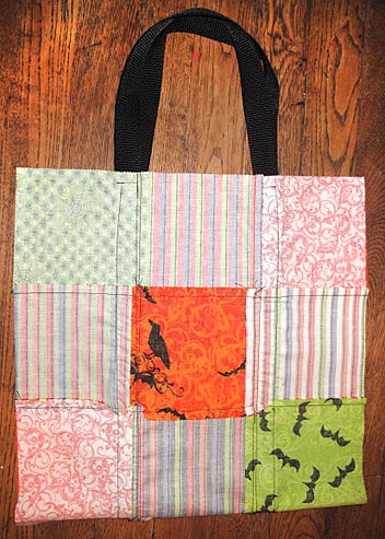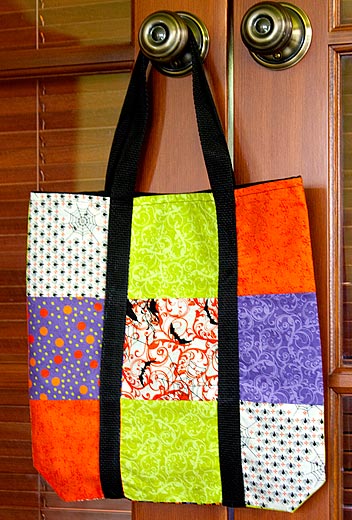 Your choices for Halloween treat bags are many and varied: paper pouches, hard plastic pumpkins, even the old-standby: a pillowcase. But none of those is as cute as our simple fabric tote. The easy patchwork pattern is bright and fun, and the heavy-duty webbing handles mean your little goblins can carry lots of tasty treats. Plus, it’s a green Halloween alternative to all the traditional throw-away decorations.