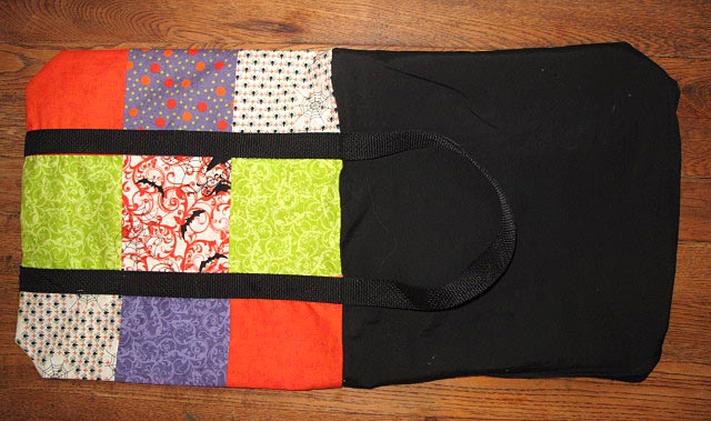 - Turn lining bag right side out. Keep patchwork bag inside out.