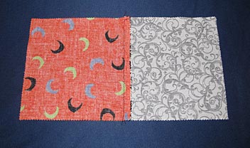 - Collect the three squares you want in your first row. Pin the first two squares, right sides together, along one side.