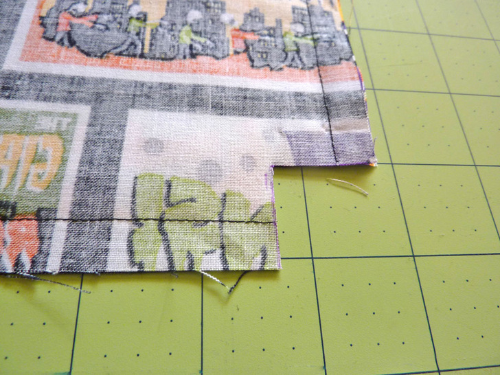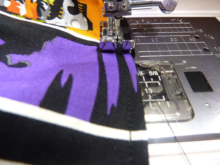 - Using a ½” seam allowance, stitch along both sides and across the bottom, pivoting at the corners.