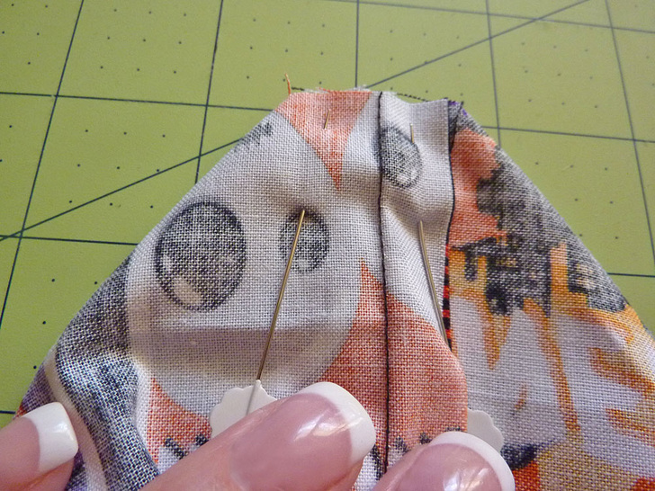 - Pin around the top, leaving a 4″ – 5″ opening at the center back.