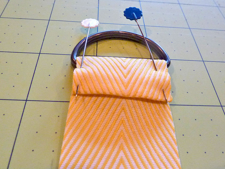 - Find the 15″ length of twill tape. Make a narrow hem on one end. To do this, turn under the end ½” and press, then turn an additional ½” and press again. Pin in place.