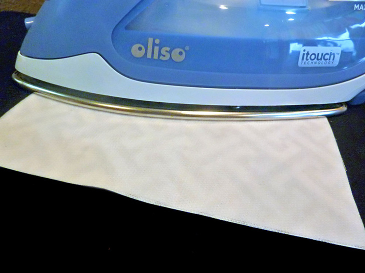 - Following manufacturer’s instructions, fuse the interfacing to the wrong side of the back exterior piece, the bottom front exterior piece, and the top front exterior piece.