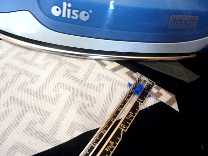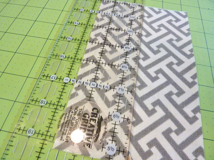 - Using your see-through ruler and fabric pen or pencil, draw a vertical line down the center of the panel.