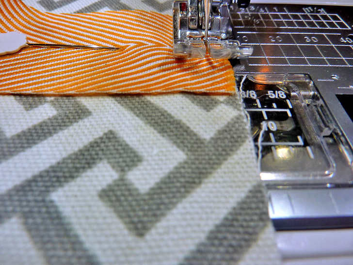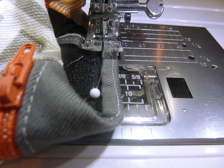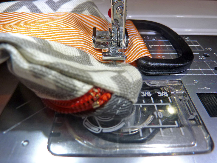 - Carefully edgestitch both sides in place. You will need to open the zipper as you go in order to stay as close to the edge as possible.