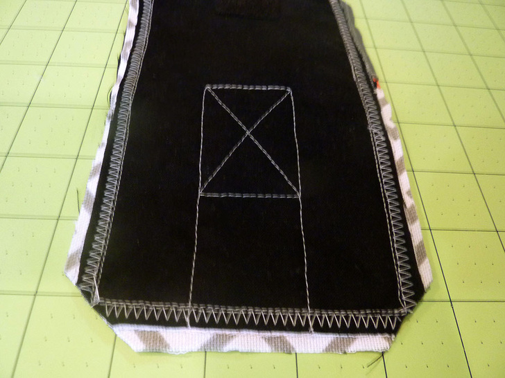 - Using ½” seam allowance, stitch along both sides and across the bottom, remembering to pivot at the corners. Stitch another seam right next to the first seam to reinforce and finish the raw edges. We used a zig zag.