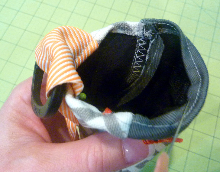 - Now when you pull the D-ring all the way up to the top, the raw edge kind of automatically folds back on itself… just like we’ll want it to later. Good raw edge!