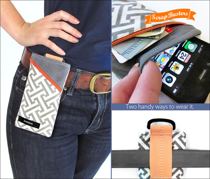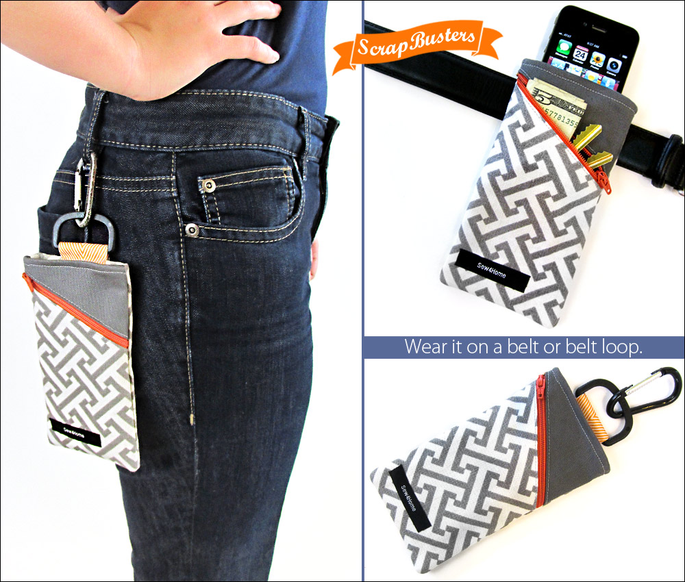 The pouch finishes at approximately 6½” x 3½”, which is a good size for most many smart phones, but some newer phones have gotten rather large. If you have a larger model, an especially bulky case, or a different brand, you may need to adjust the length and width for your best fit. Making a little paper prototype can be an effective way to test sizing.