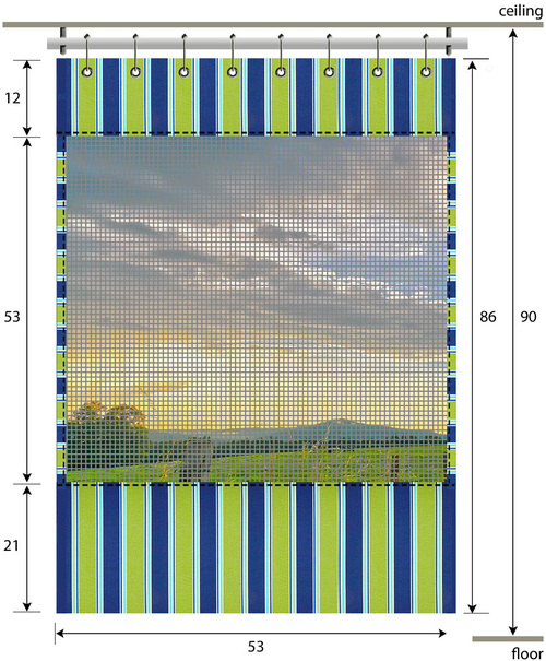 As mentioned above, our panel finished at approximately 53″ x 86″. The center “viewing square” is about 52″ x 52″.
