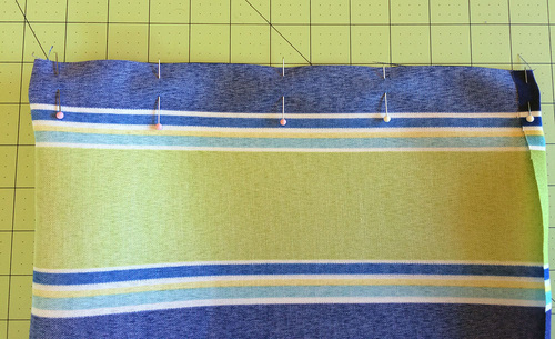 - Pin in place along the top and bottom horizontal hems. You may also want to place a few additional pins across each panel to keep the layers completely secure.