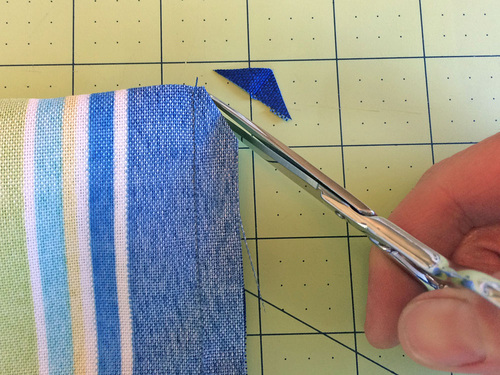 - Clip the corners. Turn right side out, press flat, pressing open the side seam allowances.