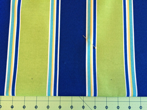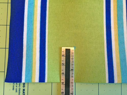 NOTE: To make the best use of the fabric, although our main upper and lower panels are cut with the stripes running vertically, the narrow side binding strips are cut WOF and so run horizontally.