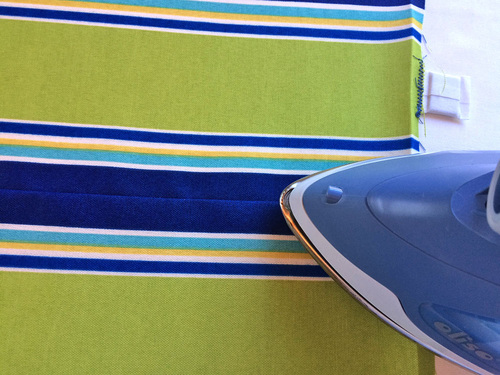 One more idea…do this work outdoors on a large picnic table? Managing those heavy panels of outdoor fabric is easier this way! Bring outdoors a best-height chair for this, and sit at the end of the table, if it has built-in seats.