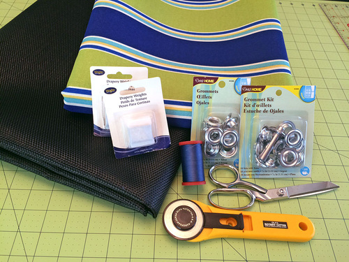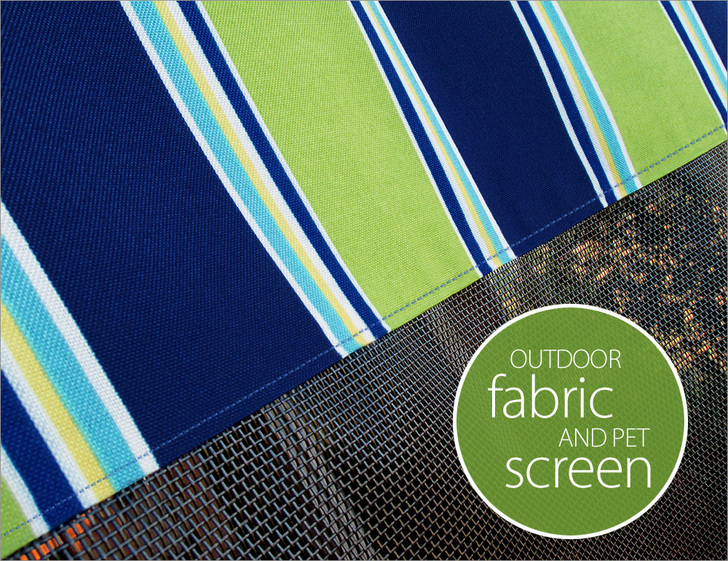 - 1⅝ yards of 54″+ Pet Screen or similar in a coordinating color to the outdoor fabric (darker fabrics are best as a sun block): we originally used 54″ Pet Screen in Black