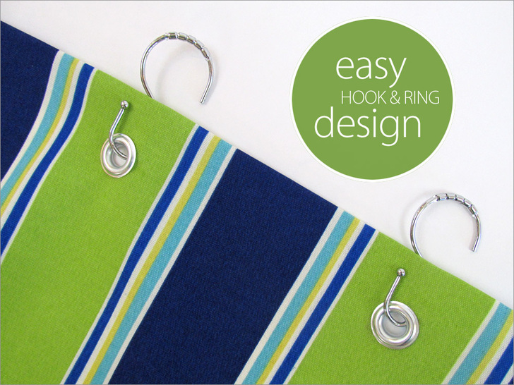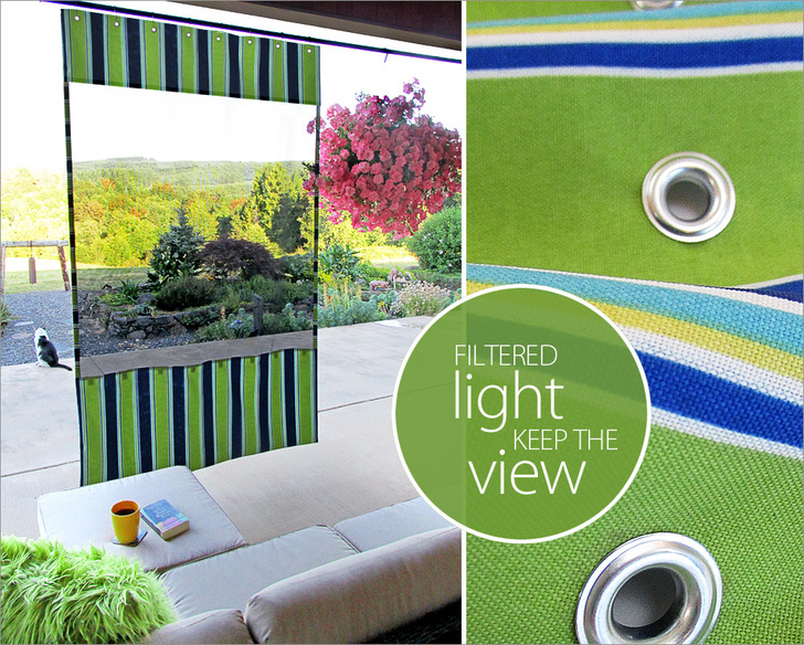 We used standard metal grommets and traditional shower curtain hooks to hang the panel. Both are economical, easy to find, and quick to insert. If you’re new to grommets, take a look at our tutorial: How to Install Metal Grommets. The hook-and-ring design also allows the panel to smoothly slide open and closed as the sun moves throughout the day.