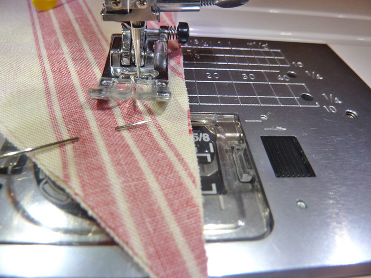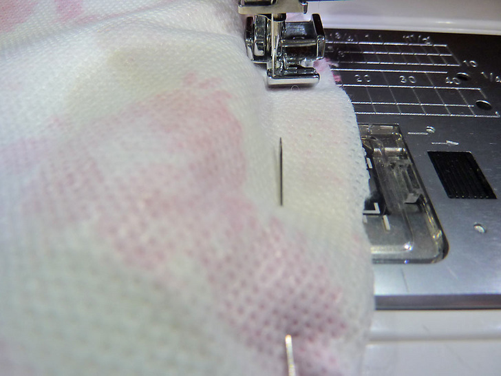 - Fold in the raw edges of the opening so they are flush with the sewn seam and pin in place.