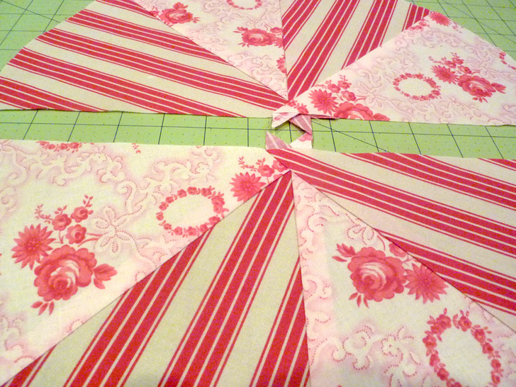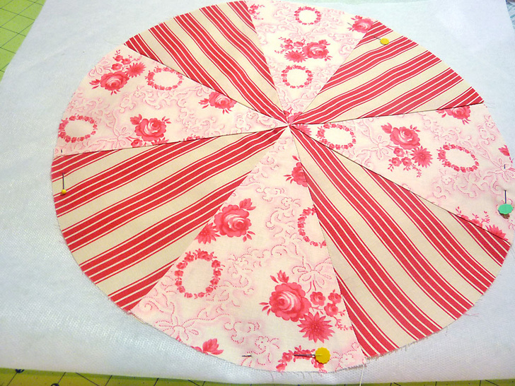 - Using a ½” seam allowance, sew the wedge shapes together.