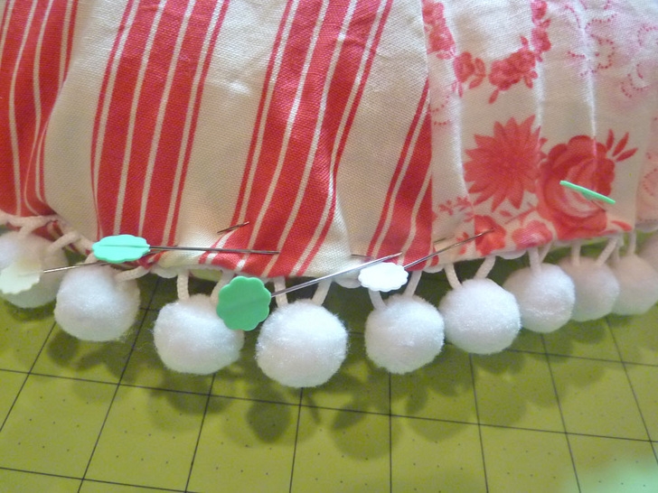 - Slip stitch the opening closed, hiding your stitches behind the pom trim.