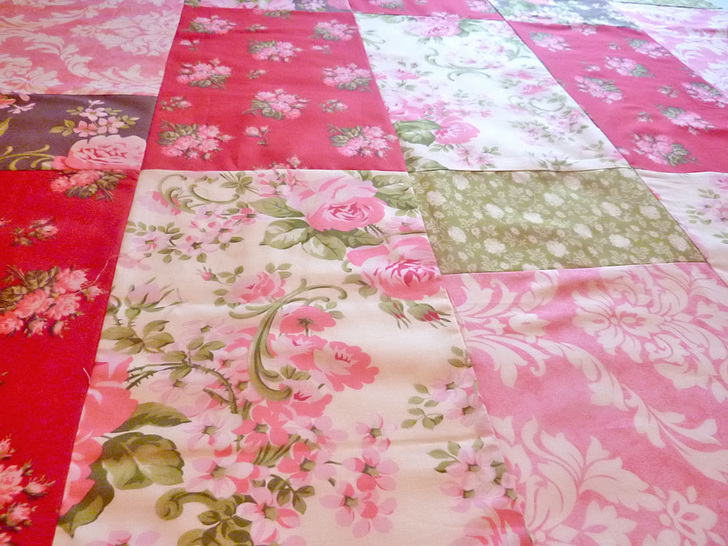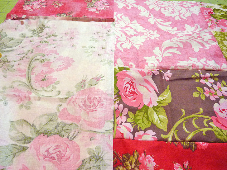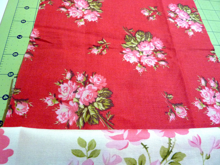 15½” x 9½” Ruby Little Bouquet (A) - Take the first pair (B and C) and pin them right sides together along one 9½” side. Stitch together (remember – all seams are ¼”). Press the finished seam open.