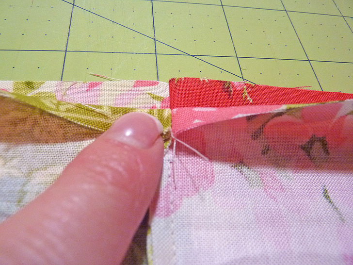 - In addition, several of the horizontal seams will intersect. Where this occurs, in order for your seams to ‘nest together’ and create perfect points on the front (a perfect intersection of the corners), you need to alternate the direction of the seam allowances you are matching up. In other words, fold one towards the top and one towards the bottom so the seams sandwich together and lay flat.