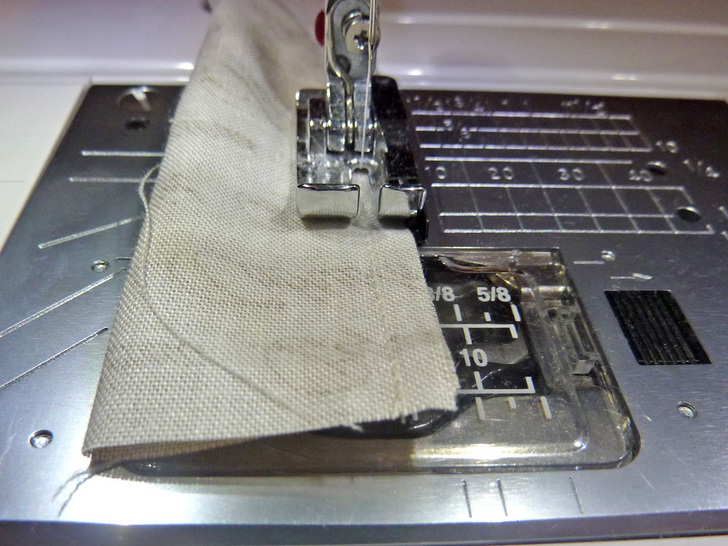 - Stitch together along the long raw edges, using a ¼” seam allowance, to create a long tube.
