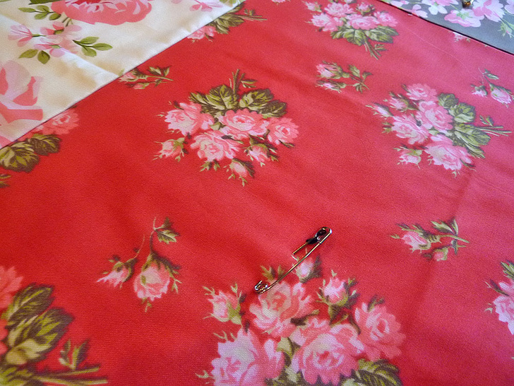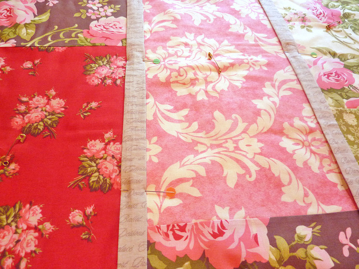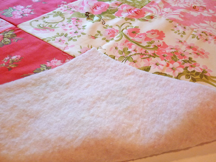 - Find your large safety pins. Place a pin in the middle of each rectangle to secure the top to the batting.