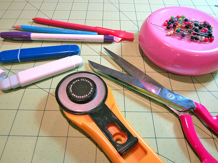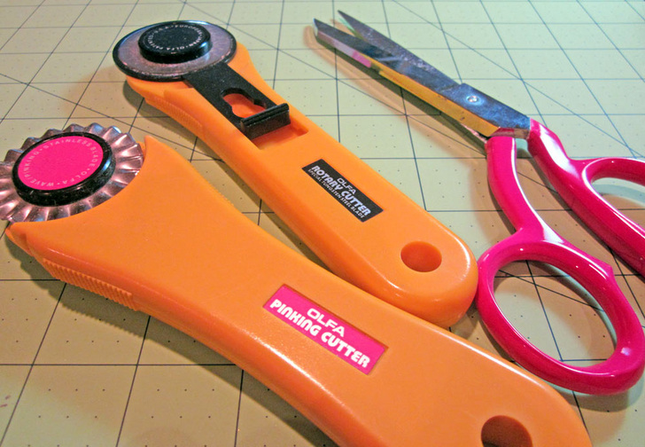 Use sharp scissors or a sharp rotary blade for cutting. Straight pins of your choice are acceptable, unless you have lightweight linen, then you should use a finer pin.