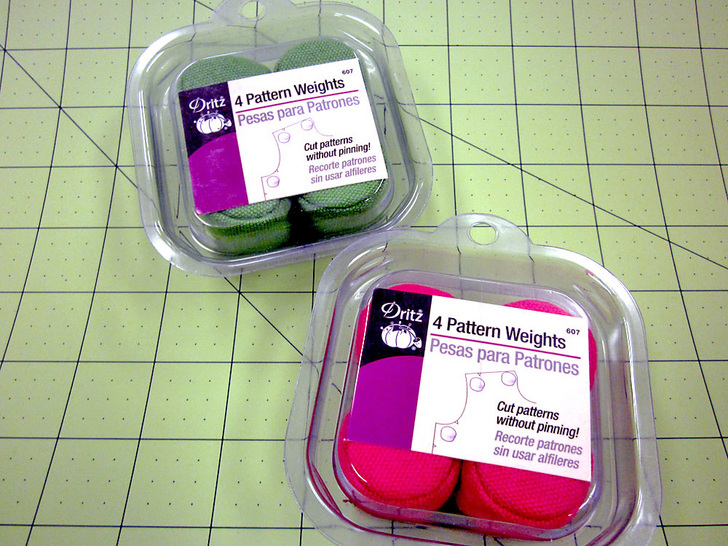 An alternative to pins are pattern weights, which some experts prefer for a slippery type of fabric.