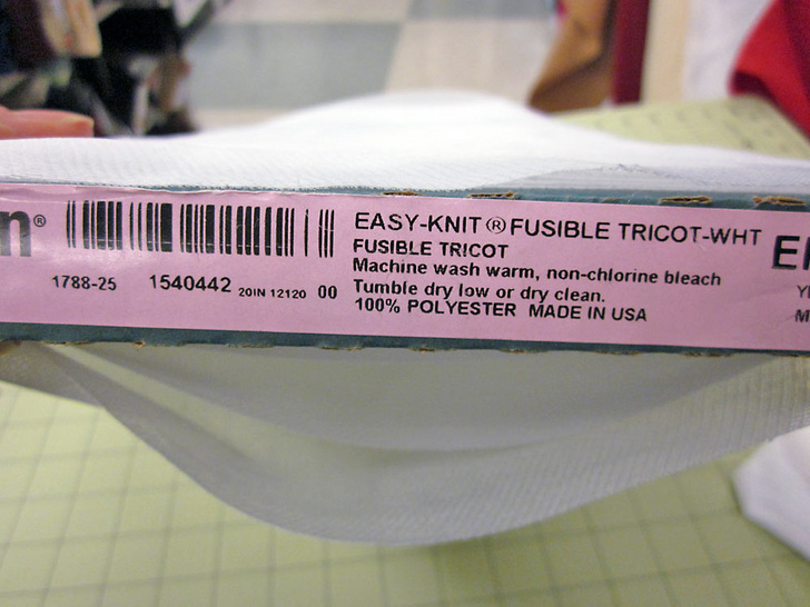 You have a variety of choices for interfacing linen. You can use sew in, fusible or do self interfacing. Your indicator for the appropriate type of interfacing is the type/weight of the linen. For example, lightweight linen should be interfaced similar to the rayon example above with French Fuse or Pellon’s Easy-Knit® (shown above).