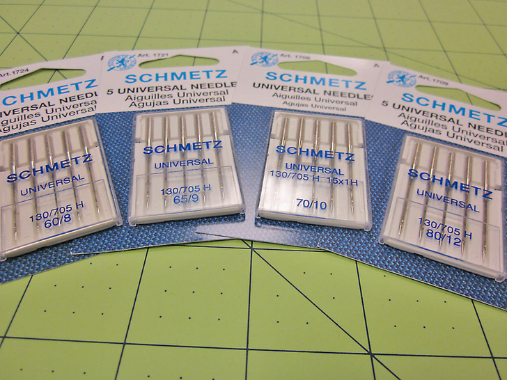 Similar to cutting with sharp scissors, start your project with a new, sharp Universal needle. The size of the needle will relate directly to the fabric weight. Therefore, a very lightweight rayon may be best sewn with a 60/8 or 70/10, whereas for a medium weight, use an 80/12.