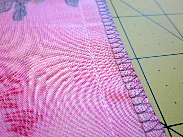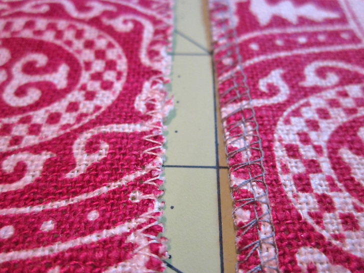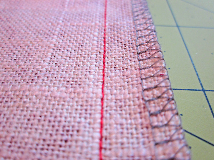 Finishing is an important step with linen because of its tendency to fray. Similar to rayon, decide how you’ll finish the raw edges before seaming. Basic seam finishes include a zig zag on a sewing machine (left in the photo below) or an overlock stitch on a serger (right in the photo below).