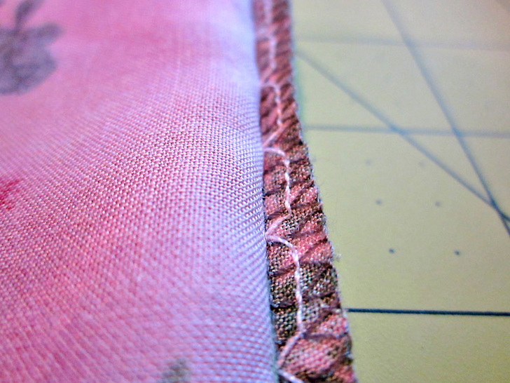 If you’re working with bias cut pieces, a small zig zag stitch will help keep the fabric from puckering. Remember, always test stitch settings on a scrap.